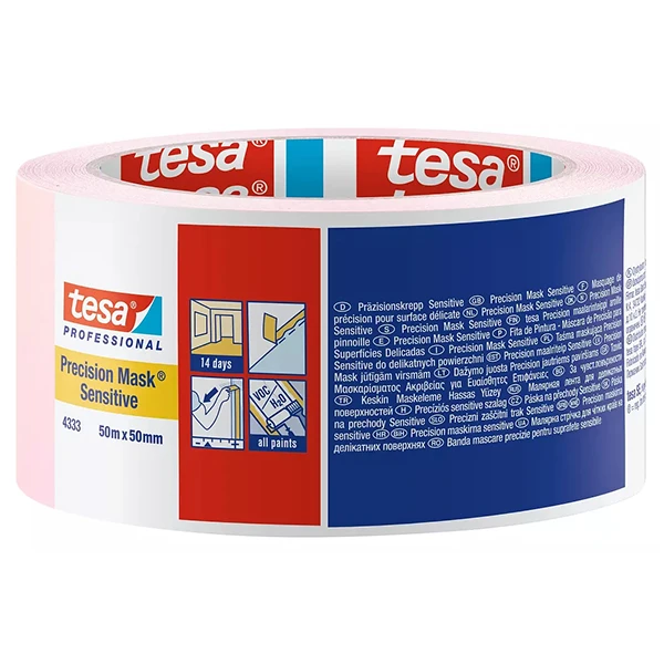 Sa formulation adhésive spéciale permet un masquage sans risque d’arranchement y compris sur les surfaces les plus fragiles telles que les papiers peints, avec une délimitation parfaite. tesa 4333 PV1 peut être retiré après 1 semaine de pose ce qui permet des réaliser de multiples travaux avec un seul adhésif de masquage.