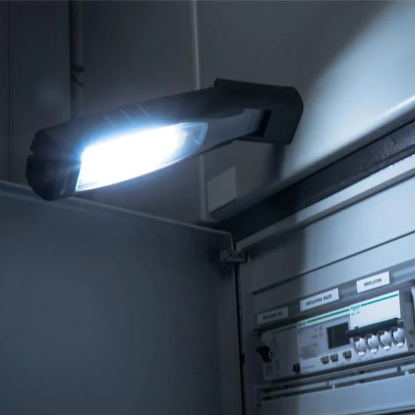 1000 lumens, une conception robuste et des solutions de montage bien pensées font de l’I4r le partenaire idéal sur le chantier. L’I4r dispose d’un large projecteur pour l’éclairage de zone et d’un faisceau ponctuel focalisé pour les inspections. Grâce à la conception flexible de la I4r, il peut s’éclairer dans n’importe quelle direction et peut être monté avec l’aimant en bas ainsi qu’avec les deux crochets intégrés à l’arrière.