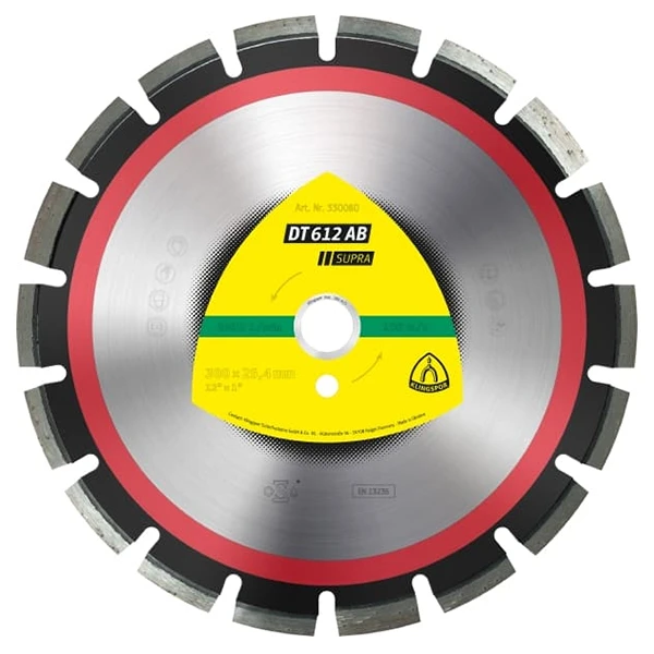 Le grand disque à tronçonner diamanté DT 612 AB Supra coupe avec aisance à travers l’asphalte, le béton et d’autres matériaux durs. Il est conçu pour être utilisé sur des machines telles que des coupe-joints ou des tronçonneuses thermiques à essence.