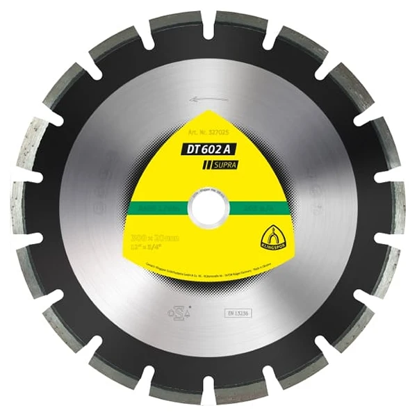Le grand disque à tronçonner diamanté DT 602 A Supra de Klingspor convient parfaitement pour la découpe et le tronçonnage de l’asphalte, du grès et d’autres matériaux abrasifs.