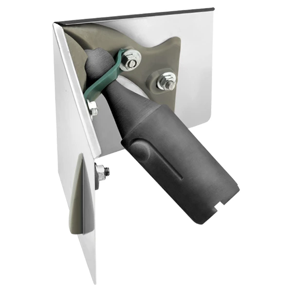 L’angle légèrement ouvert, la souplesse de la lame et l’effet ressort du système de rotule permettent de s’adapter à la plupart des cueillies à angle droit.