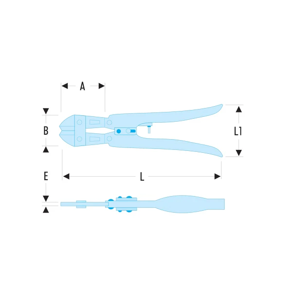 Outil compact et léger, avec système de démultiplication conçu pour couper les fils durs et mi-durs : corde à piano, boulons, rivets, vis, goupilles, clous, etc