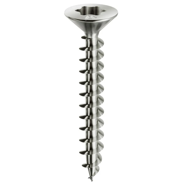Filet avec profil lisse et pointu, qui permet un vissage rapide avec un minimum d’effort, en réduisant le risque de fissuration du bois.